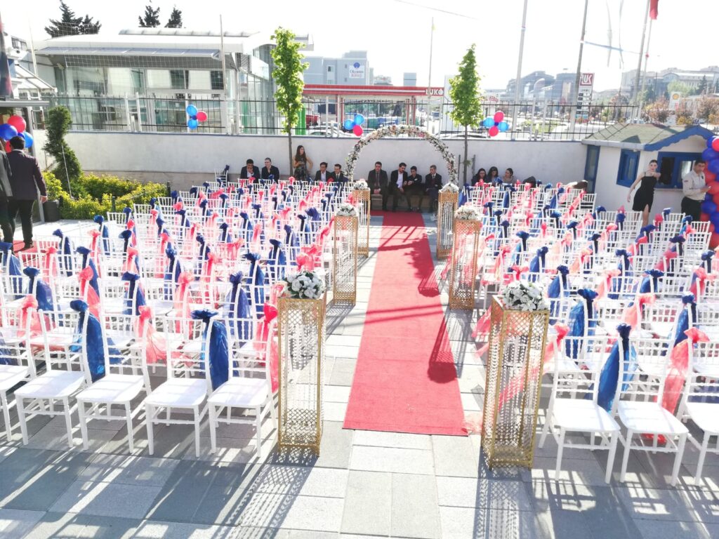 Altın, gümüş ve beyaz seçenekleriyle sunduğumuz şık sandalyeler ve dore runnerlarla bezenmiş masalarla, okul bahçenizi lüks bir balo salonuna dönüştürüyoruz.